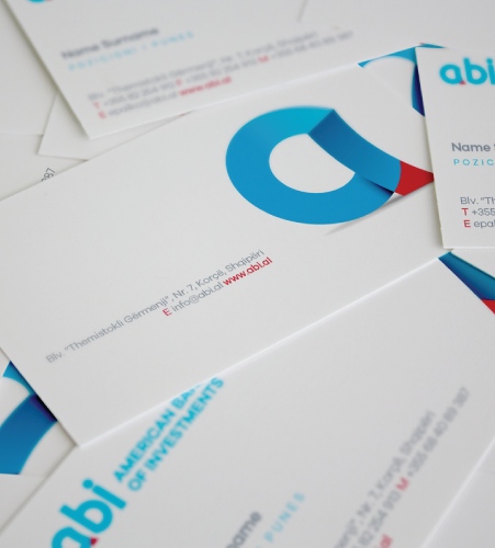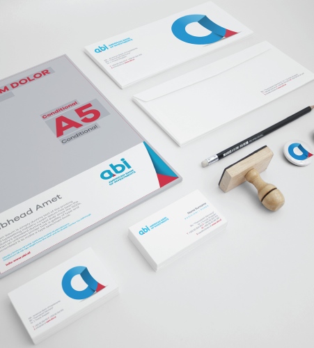 The brand device is a geometrical creation using graphic 2 dimensional objects. Colorwise, the logo uses a scheme of primary Sky-Blue and Red Color that are used to convey clarity, trust, passion and energy. The Brand Symbol is derived as byproduct between two offset circles which produce a unique “small letter a”, as such it is a wholly owned and registered trademark device by ABI Bank.