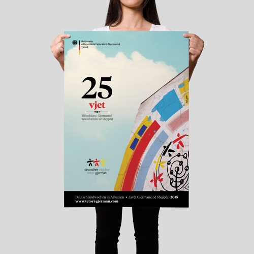 Vitin e kaluar, Ambasada Gjermane në Tiranë kërkoi të thyente rutinën përmes një identiteti vizual të fuqishëm për “Tetorin Gjerman” dhe të promovonte lidhjet e forta e pa kufij midis dy vendeve. Këtë vit, theksi ishte në festimin e ribashkimit të Gjermanisë dhe transformimin e Shqipërisë duke ruajtur njëkohësisht fokusin në lidhjet e forta midis dy vendeve gjatë 25 viteve të fundit.